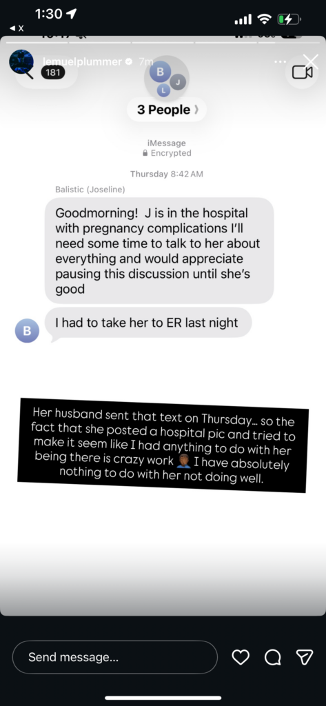 In another twist, Lemuel shared a message allegedly from Joseline’s husband, Balistic Beats, stating Joseline had checked into the hospital because she wasn’t feeling well—days before she posted publicly. Lemuel denied having anything to do with her hospitalization, calling the narrative “crazy work.”